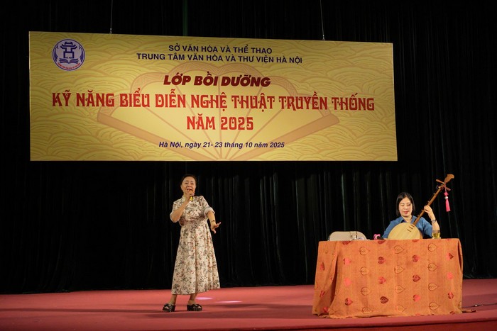 Sáng nay, tại Trung tâm Văn hóa và Thư viện Hà Nội (số 07 Phùng Hưng, phường Hà Đông, TP. Hà Nội), đã diễn ra Lễ khai mạc Lớp bồi dưỡng kỹ năng biểu diễn nghệ thuật truyền thống năm 2025 do Sở Văn hóa và Thể thao Hà Nội tổ chức, Trung tâm Văn hóa và Thư viện Hà Nội là đơn vị chủ trì thực hiện.