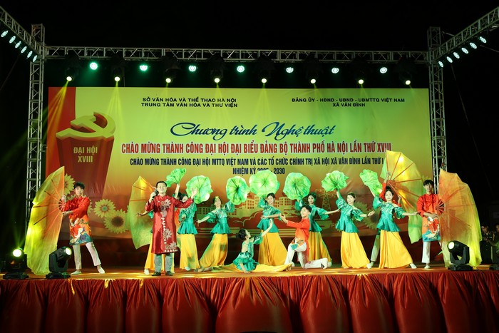 Trong không khí hân hoan chào mừng thành công Đại hội đại biểu Đảng bộ thành phố Hà Nội lần thứ XVIII, tối 19/10/2025, tại sân khấu ngoài trời Trung tâm Thương mại xã Vân Đình, Trung tâm Văn hóa và Thư viện Hà Nội phối hợp với Đảng ủy, HĐND, UBND, Ủy ban MTTQ Việt Nam xã Vân Đình tổ chức chương trình nghệ thuật đặc biệt “Hà Nội - Hội tụ và tỏa sáng”. Chương trình cũng là hoạt động ý nghĩa chào mừng Đại hội đại biểu Mặt trận Tổ quốc Việt Nam và các tổ chức chính trị - xã hội xã Vân Đình lần thứ I, nhiệm kỳ 2025–2030.