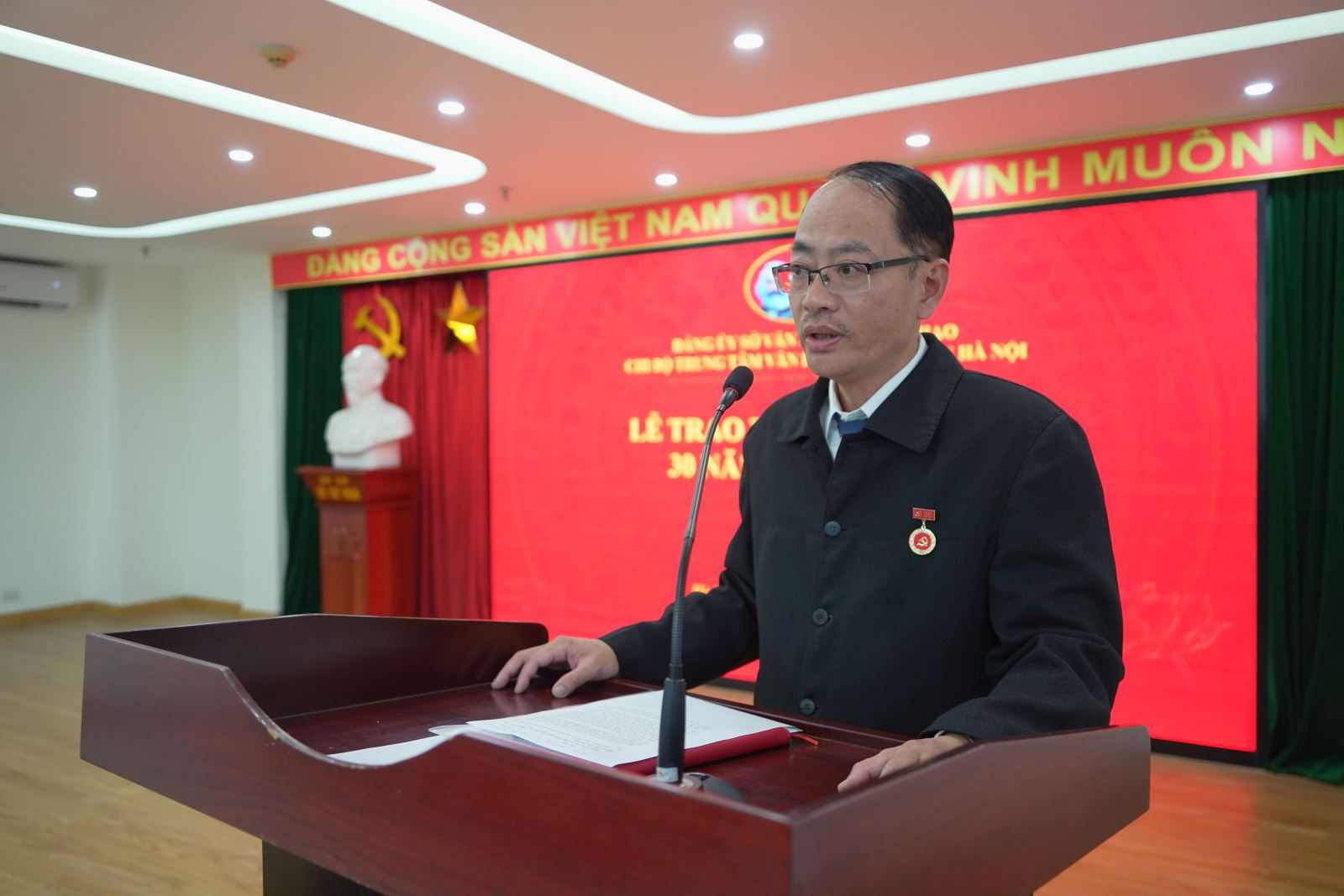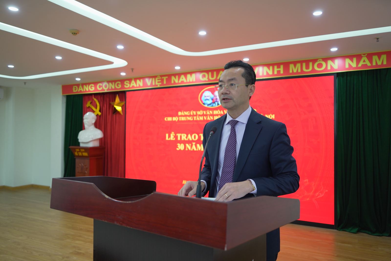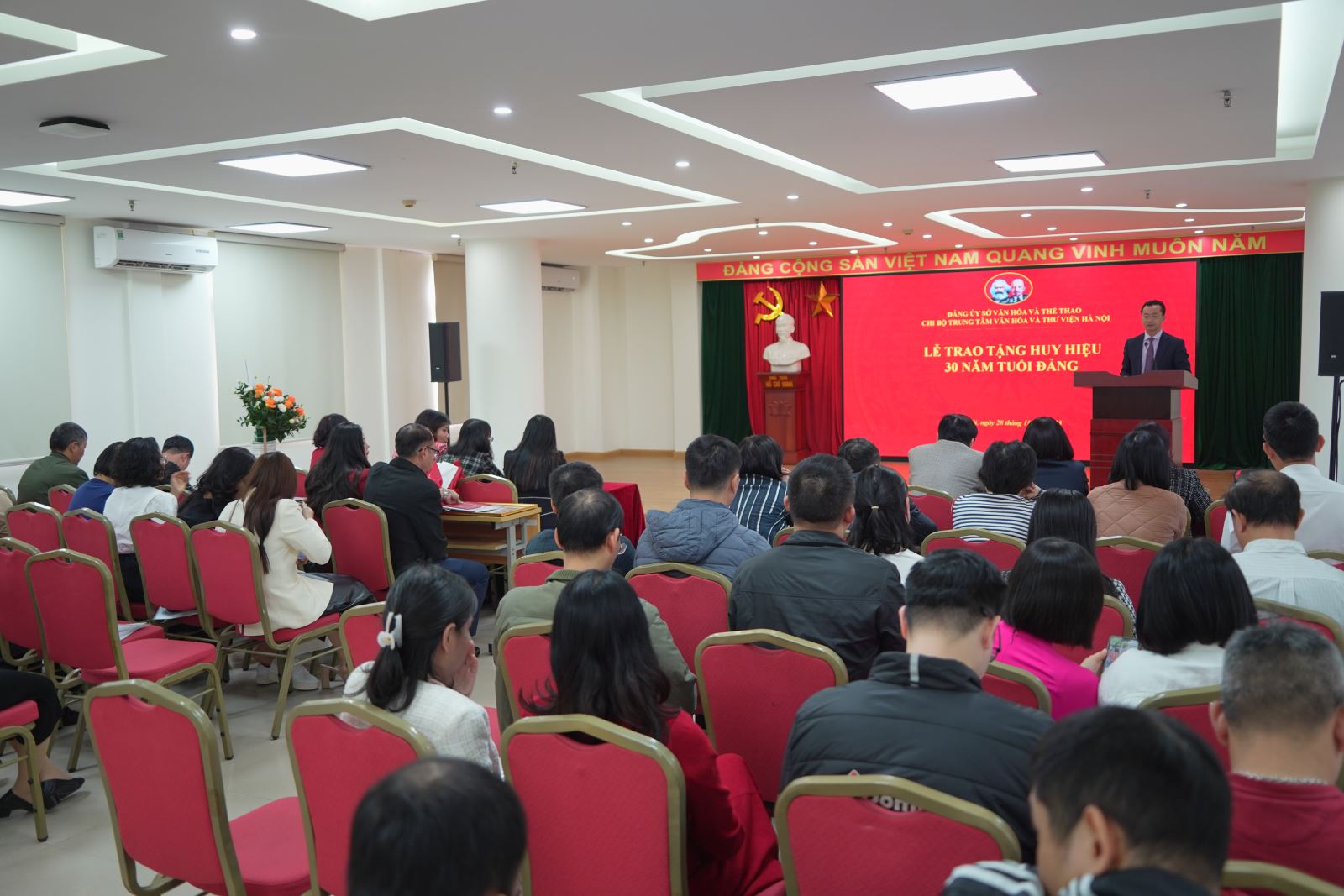 Thực hiện Quyết định số 20-QĐ/TU ngày 24/10/2025 của Ban Thường vụ Thành ủy Hà Nội về tặng Huy hiệu Đảng, sáng ngày 28/11, Đảng bộ cơ quan Sở Văn hóa và Thể thao Hà Nội và Chi bộ Trung tâm Văn hóa và Thư viện Hà Nội trang trọng tổ chức Lễ trao tặng Huy hiệu 30 năm tuổi Đảng cho đồng chí Nghiêm Văn Học, Phó Trưởng phòng Hành chính - Tổng hợp.