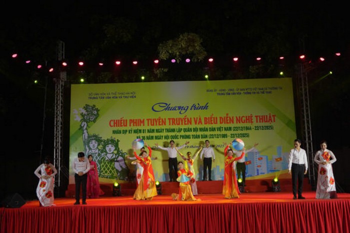 Nhân dịp kỷ niệm 81 năm Ngày thành lập Quân đội nhân dân Việt Nam (22/12/1944 – 22/12/2025) và 36 năm Ngày hội Quốc phòng toàn dân (22/12/1989 – 22/12/2025), thực hiện Kế hoạch số 15/KH-SVHTT ngày 09/01/2025 của Sở Văn hóa và Thể thao Hà Nội, Trung tâm Văn hóa và Thư viện Hà Nội tổ chức Đợt phim – Chương trình chiếu phim tuyên truyền và biểu diễn nghệ thuật phục vụ nhiệm vụ chính trị.