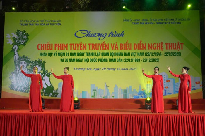 Điểm nhấn là Trung tâm Văn hóa và Thư viện Hà Nội đã tổ chức Chương trình chiếu phim tuyên truyền và biểu diễn nghệ thuật vào 19h30 ngày 19/12/2025, tại Sân khấu ngoài trời Trung tâm Văn hóa – Thông tin và Thể thao xã Thường Tín, thành phố Hà Nội. Tại chương trình, bộ phim tài liệu “Chí khí người Cộng sản Việt Nam – Trọng trách, niềm tin và khát vọng” được trình chiếu, cùng 14 tiết mục ca múa nhạc đặc sắc ca ngợi Đảng, Bác Hồ kính yêu, quê hương, đất nước và truyền thống anh hùng của Quân đội nhân dân Việt Nam, tiêu biểu như: “Thăng Long vững mãi cơ đồ”, “Bác Hồ một tình yêu bao la”, “Màu cờ tôi yêu”, “Giai điệu Tổ quốc”, “Đất nước trọn niềm vui”, “Mùa xuân trên quê hương”…