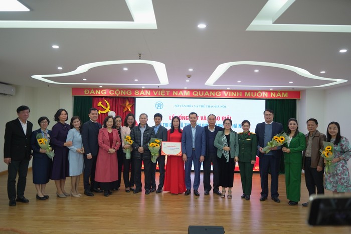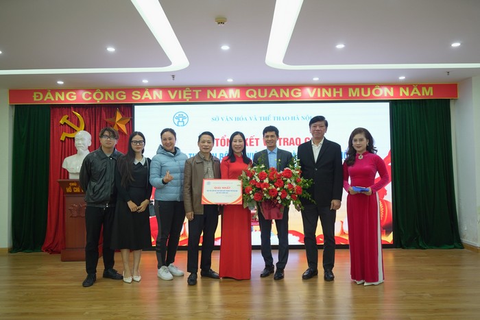 Ông Phạm Xuân Tài - Phó Giám đốc Sở Văn hóa và Thể thao Hà Nội trao giải Nhất cho cán bộ Thư viện phường Tây Hồ, Hà Nội